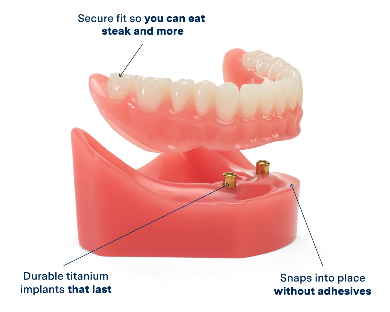 Our most premium solution comes with an industry-leading 7-year warranty and can be upgraded to implant dentures when you’re ready.