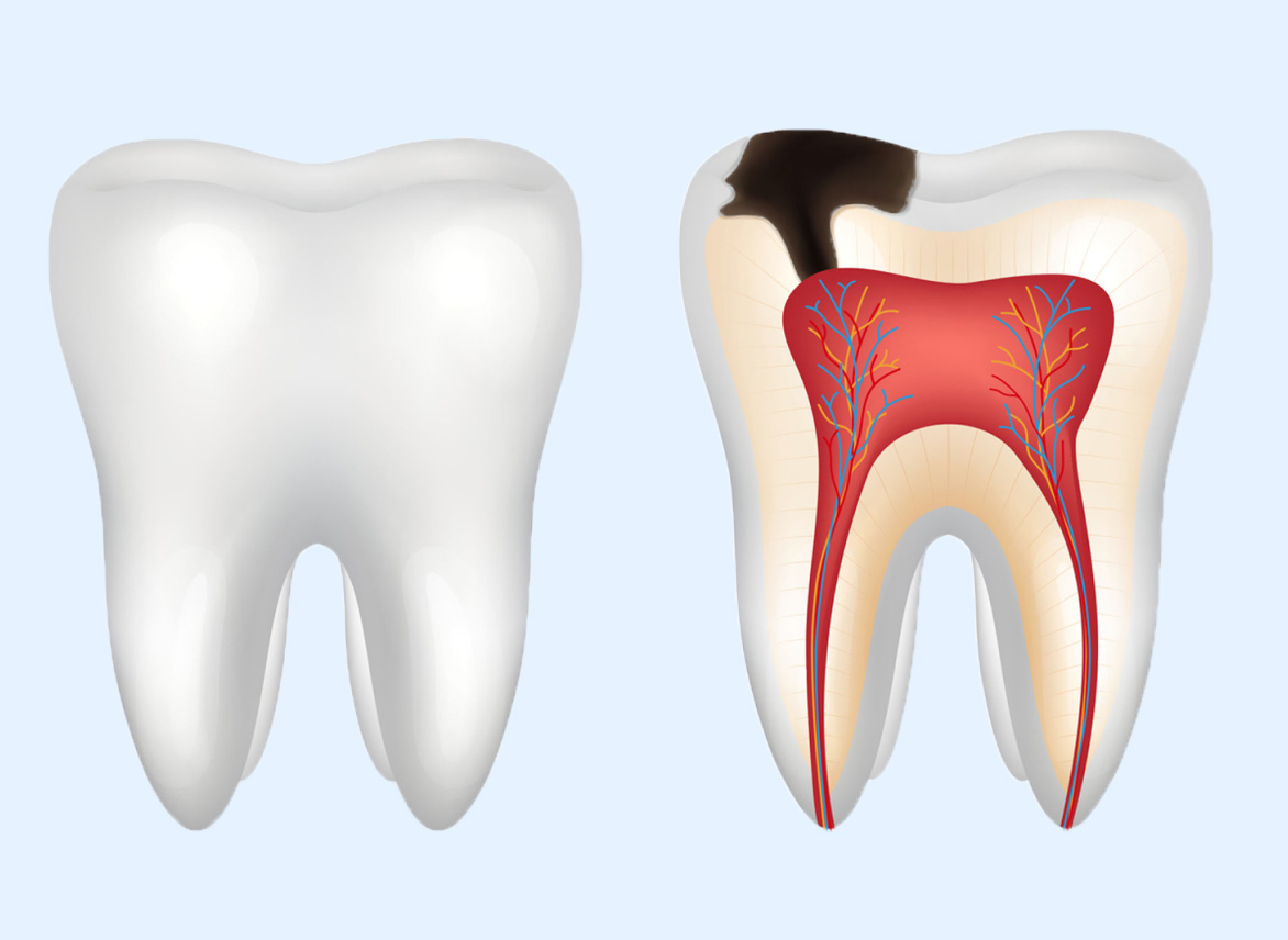 Cavities are common and happen to most of us in our lifetime. They occur when the hard outer layer of the tooth (enamel) gets damaged and form small holes or openings. Factors like bacteria, sugary and acidic foods and drinks, poor oral hygiene and not using fluoride can all cause cavities.